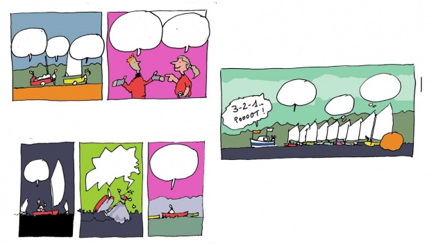 At the Kinder Cup - Torboli Trophy, scheduled from 13 to 15 October, we will meet Davide Besana, writer and cartoonist, who will tell us about his project "Sail the children". All participants are invited to create the dialogues of the cartoon designed for the event and send it to info@fragliavelariva.it. The best dialogues will be chosen in the following age groups 8-10, 11-13, 14-15. The best ones will be awarded during the meeting on Saturday 14 October.